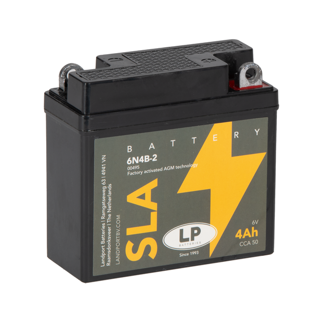 Deze 6N4B-2 Landport (LP) AGM Factory activated SLA motoraccu heeft een capaciteit van 4Ah. Deze accu uit de LP SLA serie van Landport, voorheen bekend als , heeft een startkracht van 50 is op de fabriek gevuld, geladen en afgesloten. Hierdoor is de accu bij levering volledig gebruiksklaar en onderhoudsvrij. Door de SLA (Sealed Lead Acid) AGM constructie is de accu ook nog eens 100% lekvrij en kan de accu stukken beter tegen diepere ontlading. Landport is een specialistisch motor accu merk, ook wel bekend uit de racerij waaronder de Moto2 klasse. LP is OE leverancier voor KSR moto. Je kan er dus vanuit gaan dat alle batterijen volledig voldoen aan de OE specificaties en worden geproduceerd volgens de hoogste kwaliteits eisen. De Landport (LP) MS 6N4B-2 SLA AGM motor accu heeft de maten 101mm bij 47mm en 95mm hoog (Lengte x breedte x hoogte) en is voorzien van Y6 polen. De layout (poolschema) is schema 2.